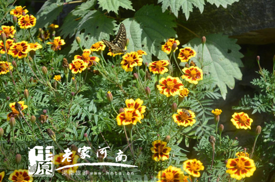 “任其東西南北風,大石壓身不毀容”。這是開在八里溝景區(qū)“鳳凰大峽谷”里的山花。