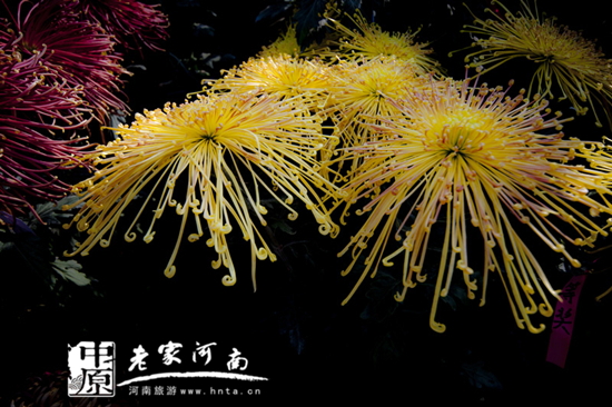 滿(mǎn)園的菊色繽紛,滿(mǎn)園的菊香四溢。此次展出的菊花不但品種多,而且色彩豐富,幾乎包羅了色譜中的所有顏色。黃菊雍容華貴、金光燦爛,紅菊熱情奔放、絢麗奪目,白菊淡妝素裹、清新宜人,綠菊晶瑩剔透、嬌艷欲滴,黑紫色菊花端莊凝重、極具魅力。參展菊花的姿態(tài)更是令人嘆為觀(guān)止,有的像彩帶飛舞,有的像圓珠含抱,有的如龍爪挺伸,有的像性感的模特,有的似一籮筐雞蛋,有的似華麗的蛋糕,姿態(tài)萬(wàn)千,嘆為觀(guān)止。