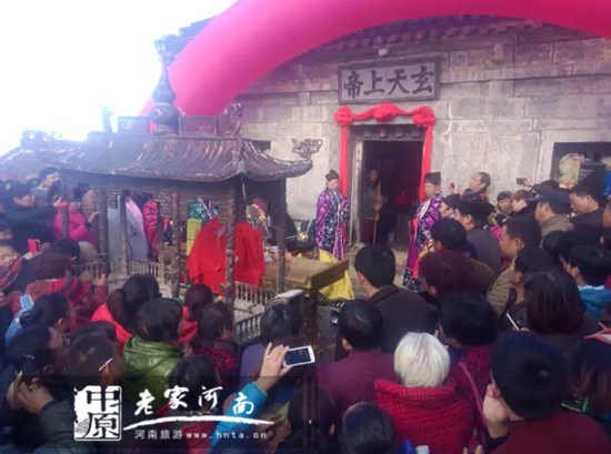新鄉(xiāng)南太行天界山景區(qū)為弘揚道教歷史文化,也為了滿足社會各界慈善家的心愿,決定在11月14日(十月初三)為天界山老爺頂祖師大殿進行貼金復光,對室內(nèi)進行修繕,并舉行復光慶典。