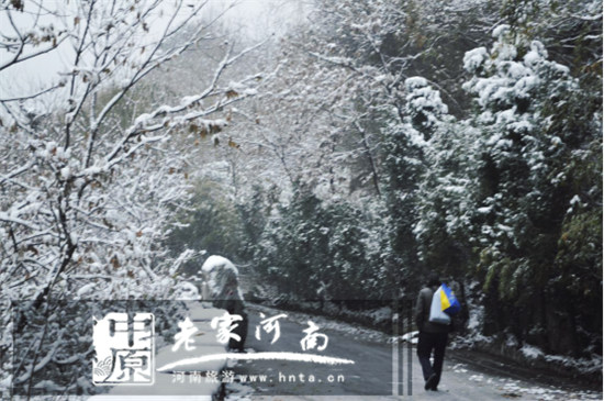 曲徑通幽上太行,雪花飄飄沾衣裳。雪境吟唱舊農(nóng)家,院前空地開梨花。