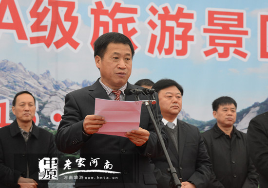 11月30日上午,嵖岈山國家5A級旅游景區(qū)揭牌儀式在遂平縣嵖岈山景區(qū)隆重舉行。駐馬店市委副書記、市長陳星為嵖岈山國家5A級旅游景區(qū)揭牌,省旅游局副局長張鳳有宣讀《全國旅游資源規(guī)劃開發(fā)質(zhì)量評定委員會公告》,市委副書記張憲中致辭。儀式由市政府副市長李國勝主持。參加揭牌儀式的市領(lǐng)導(dǎo)還有市人大常委會副主任喬登華、市政協(xié)副主席鄭玉林等。遂平縣委書記付自成在儀式上介紹了嵖岈山國家5A級旅游景區(qū)創(chuàng)建基本情況。嵖岈山景區(qū)獲得國家5A級旅游景區(qū)這一金質(zhì)招牌,一舉實現(xiàn)駐馬店市乃至豫南地區(qū)5A級旅游景區(qū)“零的突破”,必將進一步推動全市旅游業(yè)的迅速發(fā)展。