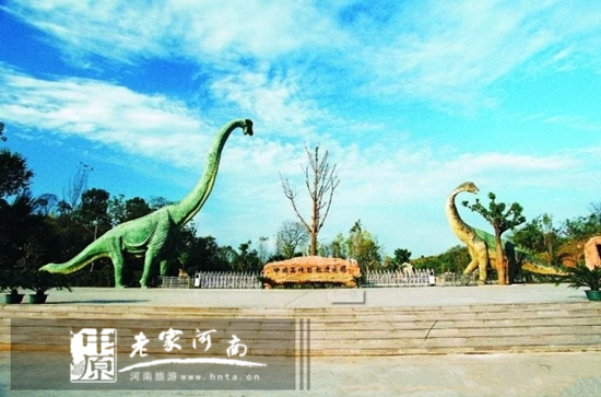 恐龍遺跡園位于秦嶺山脈東段、伏牛山南麓的河南省丹水鎮(zhèn)三里廟村。西峽恐龍遺跡園是南陽伏牛山世界地質公園的核心景區(qū)、國家5A級旅游景區(qū)和河南省服務標準化示范景區(qū),主要由地質科普廣場、恐龍蛋化石博物館、恐龍蛋遺址和仿真恐龍園等部分組成?铸埖斑z址的蛋化石層是西坪——丹水盆地的最高層位,已暴露的蛋化石達1000多枚。在它的下部地層至少還有16個產蛋層,現(xiàn)已確定蛋化石分別歸于6科9屬13種。特別是巨型長形蛋和戈壁棱柱形蛋,世界稀有罕見,是西峽蛋化石的標志。我縣出土的恐龍蛋化石,數量之大、種類之多、分布之廣、保存之好,堪稱“世界之最”。被譽為繼“秦始皇陵兵馬俑”之后的世界第九大奇跡?铸堖z跡承載著遠古時代生命科學的重要信息,期待著人類去破解恐龍滅亡之謎。