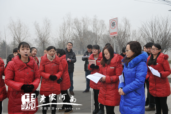 凜冽寒風(fēng)中,康百萬莊園第四季度講解比賽正在順利進行中。