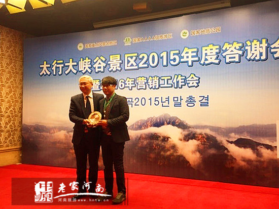 記者從會(huì)議獲悉,太行大峽谷景區(qū)2015年度國內(nèi)游客增幅達(dá)到46%,年度銷售收入增長35%,韓國市場受到中東呼吸綜合征疫情影響,增幅收窄,但游客量仍穩(wěn)定在10萬人以上,會(huì)議現(xiàn)場還向?yàn)轫n國市場開發(fā)做出突出貢獻(xiàn)的韓國哈拿多樂旅游集團(tuán)申承澈本部長頒發(fā)了卓越貢獻(xiàn)榮譽(yù)獎(jiǎng)。
