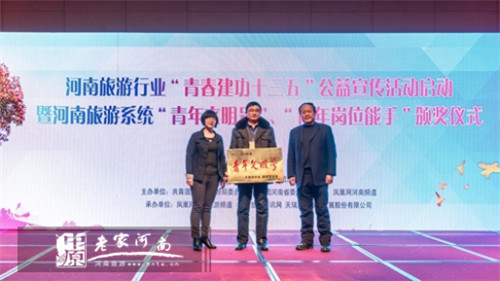 河南省旅游局黨委專職副書記潘進(jìn)軍為獲獎(jiǎng)單位頒獎(jiǎng)