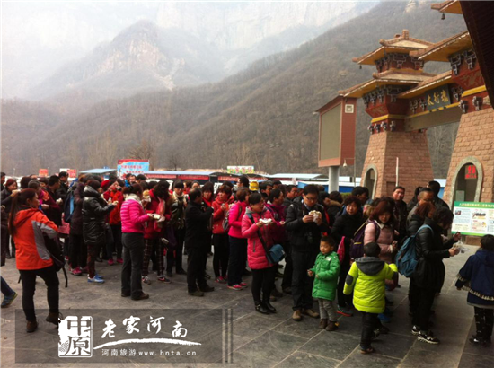 截至2月7日,在春節(jié)假期7天時間內(nèi),來自四面八方的3萬多名游客在河南省新鄉(xiāng)南太行八里溝園區(qū)度過快樂的春節(jié)假期。他們在這里祈求國泰民安,欣賞天然冰瀑,度過一個祥和吉利年。
