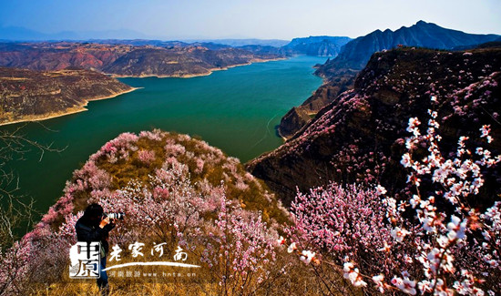 桃花有神妙,靈性在仙山,風(fēng)景秀麗的荊紫仙山地處黃河小浪底沉積區(qū),渾濁、奔騰的黃河水在這里無聲無息的安靜下來,變成一處清澈碧藍的水域,襯托著清幽的荊紫仙山,堪稱省內(nèi)少見的青山綠水。