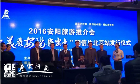 3月10日上午,“2016安陽旅游推介會暨‘把美麗安陽寄出去’明信片北京站發(fā)行儀式”在首都北京成功舉辦。市領導袁勇、中國郵政集團公司河南省分公司副巡視員郭洪杰、北京市分公司副總經(jīng)理范小榮、中國國際旅行社總社有限公司副總裁胡志敏、中青旅控股股份有限公司副總裁高志權、以及在北京的安陽籍企業(yè)代表、旅游業(yè)界代表,中央、省級媒體參加了儀式。