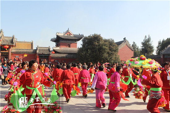 為增加廟會色彩,太昊伏羲陵景區(qū)組織了近30個擔(dān)經(jīng)挑、舞龍、舞獅、旱船、盤鼓、腰鼓等民間藝術(shù)團(tuán)體在太極門廣場、伏羲文化廣場等場地進(jìn)行不間斷演出。(圖/文:程敬華)