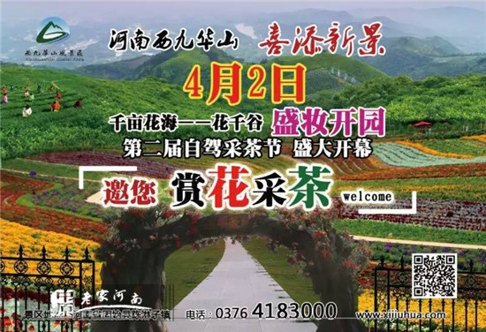 4月2日,河南西九華山“第二屆自駕采茶旅游節(jié)”暨“花千谷景區(qū)”開園慶典邀您體驗賞花采茶之旅。