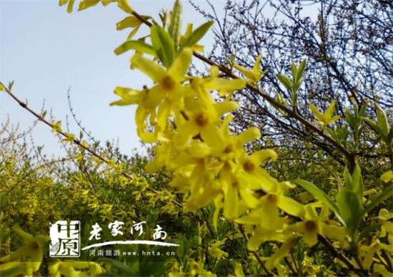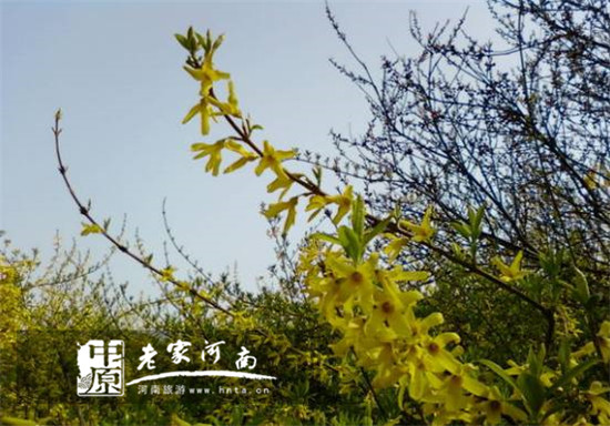 三月過后,黛眉山的連翹自下而上,依次競放。這其中,以望鄉(xiāng)峰附近最妙。每年三四月份,整個山峰金黃燦爛,“很成氣候”。