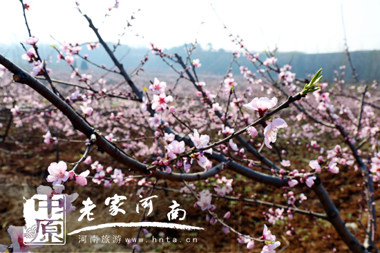 云陽鎮(zhèn)位于該縣東北部,是中原人類發(fā)祥地——“南召猿人”的發(fā)現(xiàn)地,上世紀(jì)90年代,該鎮(zhèn)唐莊村開始發(fā)展以桃樹為主的經(jīng)濟(jì)林種植,2013年,唐莊村品種桃種植帶動(dòng)了周邊7個(gè)行政村的群眾,種植總面積達(dá)1.1萬畝,年產(chǎn)鮮桃200萬噸以上,每年3月下旬至4月初,10多萬株桃花次第開放,漫山紅遍,美不勝收,游人如織。