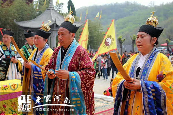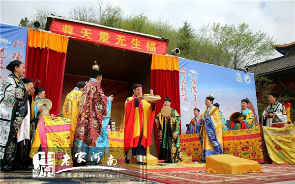 4月9日,農(nóng)歷三月三,地處南陽市南召縣四棵樹鄉(xiāng)的國家4A級景區(qū)、道教圣地北頂五朵山上演了一出精彩的祭天大典。當(dāng)天,適逢五朵山第17屆三月三民俗廟會,逾萬名來自河南、湖北、山西、山東、河北等地的游客與香客一同見證了這場高規(guī)格的“祭天”大典。