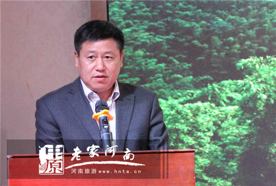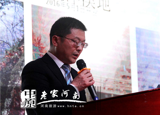 隨后,新怡和控股集團(tuán)總裁李剛先生就旗下河南西九華山旅游風(fēng)景區(qū)在會上做了長達(dá)半個小時的詳細(xì)推介,對西九華山景區(qū)的歷史文化、發(fā)展規(guī)劃、景觀特色及景區(qū)亮點做了細(xì)致的闡述。李剛總裁還重點介紹了已于4月2日隆重開幕的“河南西九華山第二屆自駕旅游采茶節(jié)”活動以及4月2日開園試營業(yè)的千畝花海——花千谷景區(qū),并且說花千谷景區(qū)本月內(nèi)向全國游客免費開放。另外,他還向與會嘉賓介紹了即將與5月1日開業(yè)的另一個新景點——龍津地景區(qū),并誠邀廣大蚌埠市民屆時蒞臨游玩。