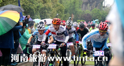 開幕式結(jié)束后,來自全國各地的山地自行車運動愛好者,迎著清涼的春風(fēng),在嵖岈山秀美的湖光山色中愉快的開始比賽。