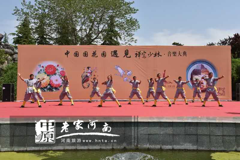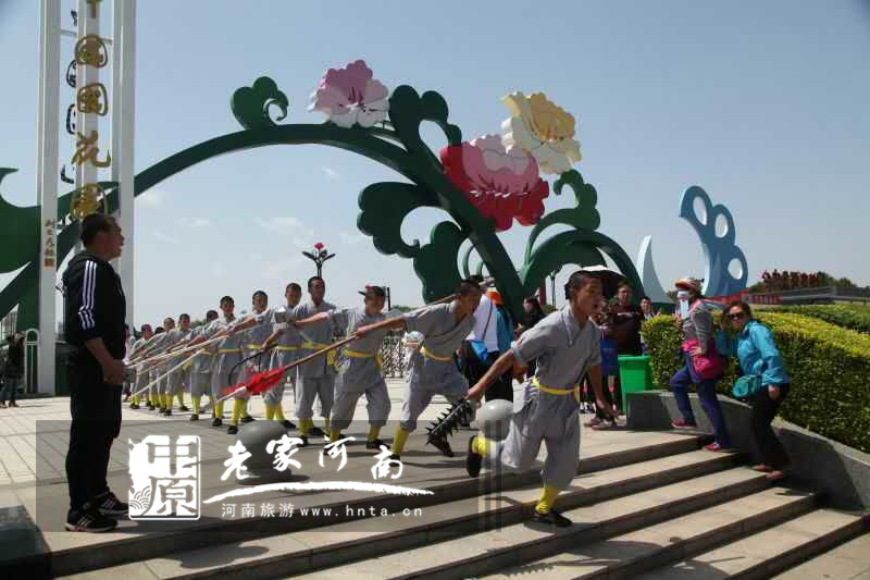 4月16日上午11點(diǎn)左右,中國國花園西門廣場(chǎng)上,一群來自登封《禪宗少林·音樂大典》的少林武僧從假山、牡丹花叢中突然走出,伴隨著雄渾的音樂,現(xiàn)場(chǎng)耍起少林功夫,他們時(shí)而器械對(duì)陣、時(shí)而套路演練,贏得了圍觀游客的陣陣掌聲,音樂停止,少林武僧迅速解散,給逛園游客帶來了不少驚喜。