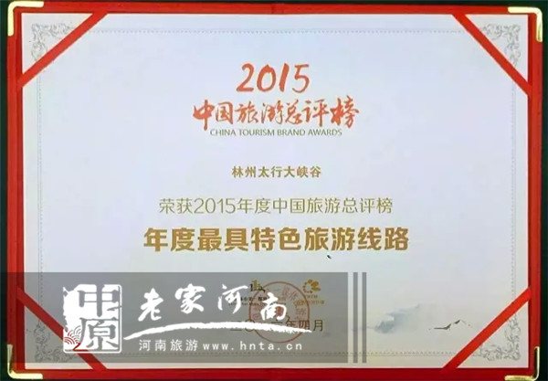 太行大峽谷榮獲中國旅游總評(píng)榜“年度最具特色旅游線路”