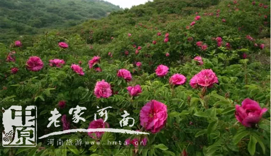 玫瑰園內(nèi)開滿山坡的紫紅玫瑰如同天幕灑落山間的璀璨煙火,層出不窮,美不勝收。