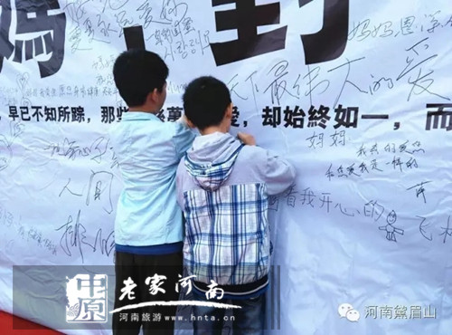 欣賞美景,感懷母愛。不少游客在寫下對母親的祝福后,和家人一起盡情的欣賞美景,拍照留念,其樂融融,顯得五月的黛眉山更加迷人。
