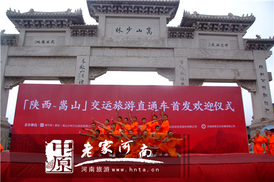 讓出游更簡單,讓假日更精彩。5月14日下午14點,由港中旅(登封)嵩山少林文化旅游有限公司和陜西平安運輸集團主辦,陜西游運旅游投資股份有限公司和河南鼎商文化傳播有限公司承辦的陜西-嵩山旅游直通車首發(fā)歡迎儀式在嵩山少林景區(qū)隆重舉行,來自陜西各省市的第一批150余名游客參與了此次活動,并參觀了少林景區(qū)盛大的功夫表演——印象少林。