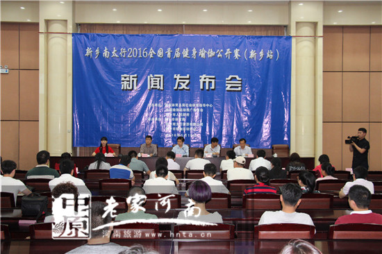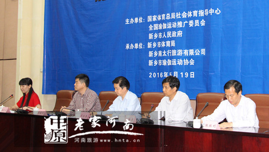 2016年5月19日,新鄉(xiāng)市政府召開(kāi)新聞發(fā)布會(huì),向省市新聞媒體介紹新鄉(xiāng)南太行2016全國(guó)首屆健身瑜伽公開(kāi)賽有關(guān)情況。新鄉(xiāng)市政府秘書(shū)長(zhǎng)吳岳善、市政府新聞辦公室副主任孫傳勇、市體育局副局長(zhǎng)王建華、市外事僑務(wù)旅游局副局長(zhǎng)冀國(guó)強(qiáng)、新鄉(xiāng)南太行旅游公司副總經(jīng)理張振利、新鄉(xiāng)市瑜伽協(xié)會(huì)會(huì)長(zhǎng)周焱焱出席新聞發(fā)布會(huì)。