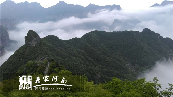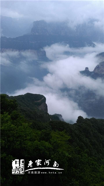 5月下旬的河南省新鄉(xiāng)南太行天界山,藍(lán)藍(lán)的天空飄著朵朵白云,應(yīng)照了一句詩“白云飛渡繞太行,翠碧青山翻波浪”。