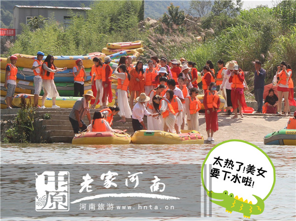 其實美女們也很辛苦,沒辦法,熱啊!頂著火辣辣的太陽,白嫩嫩的肌膚被炙烤著,連小編都覺得心疼!不過,佳麗們精神卻很高漲,肯定都迫不及待的想沖下水去。這樣的天氣對漂流來說其實是好事,不用擔心水涼的問題了。