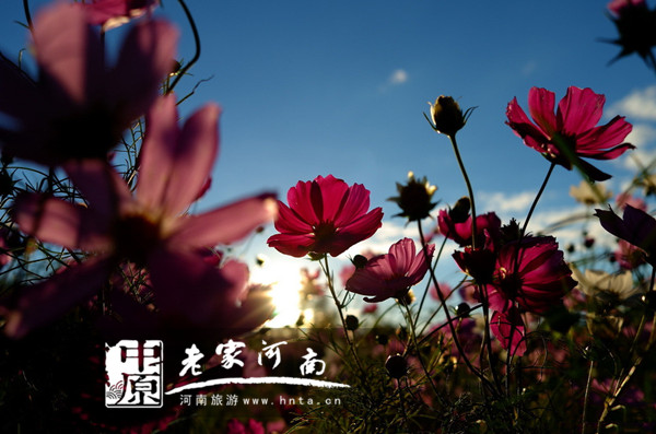 藍天白云,花海佳麗,黛眉山花美,人美,景更美,趕快來吧,25號,黛眉山和你,無論如何都要約!