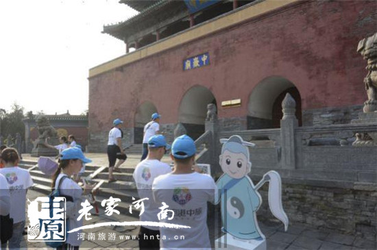 第三站第一個(gè)尋寶點(diǎn):天中閣。在巍巍聳立的中岳廟前,小道士手托尋寶通關(guān)二維碼,大家火速圍觀掃碼中。