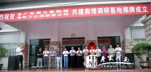 2016年6月23日,河南大象融媒體集團(tuán)有限公司(以下簡(jiǎn)稱大象融媒)大象輿情研究院與洛陽(yáng)萬(wàn)山湖旅游景區(qū)有限公司合作,共同成立了龍?zhí)洞髰{谷景輿情調(diào)研基地,并舉行了調(diào)研基地的揭牌儀式。
