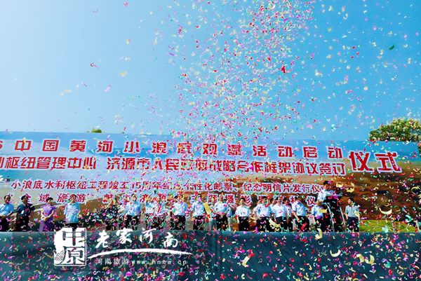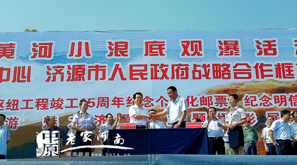 本次觀瀑活動內(nèi)容豐富,主會場設在小浪底景區(qū)壩后公園內(nèi)舉行,組委會把調(diào)水調(diào)沙啟動儀式、小浪底竣工15周年個性化郵票發(fā)行儀式、“全域旅游、魅力濟源”主題攝影展開機儀式以及文藝演出等活動有機融合,為游客提供一場激動人心而又別開生面的旅游盛會。小浪底水利樞紐管理中心與濟源市人民政府還在主會場簽訂了戰(zhàn)略合作框架協(xié)議