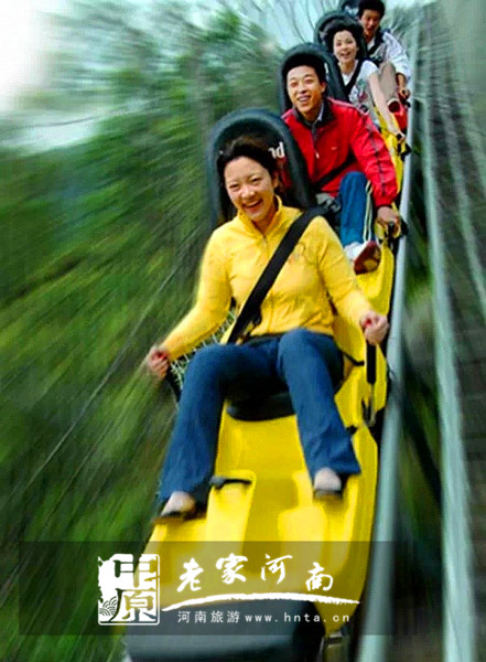 邂逅驚險(xiǎn)刺激。依依不舍的讓8億年的地質(zhì)造化在相機(jī)、手機(jī)里定格,一步三回頭的坐上滑道下山,耳邊清涼的山風(fēng)、撲面醉人的花香、身邊飛馳而過的美景,如是在花海里飄逸,在綠茵中穿梭,盡享超越的速度與激情!