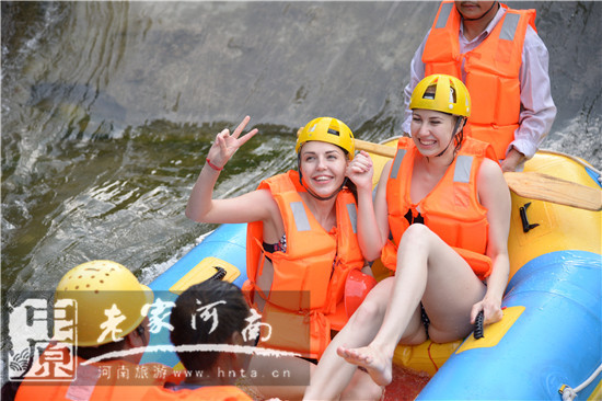 一路尖叫、一路歡笑,足球?qū)氊愒隗@險(xiǎn)刺激的堯山第一漂體驗(yàn)了異國(guó)的水上運(yùn)動(dòng),足球與漂流共舞,足球?qū)氊悅儻偪翊蚱鹆怂,再次展示了她們?duì)這里的熱愛,清涼、冰爽的漂流和游客們歡樂的互動(dòng),讓她們不由擺出各種pose,并紛紛與游客合影留念。