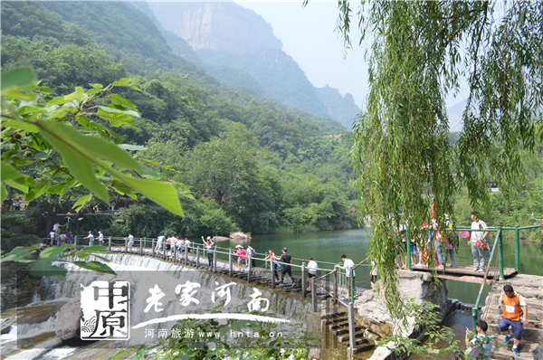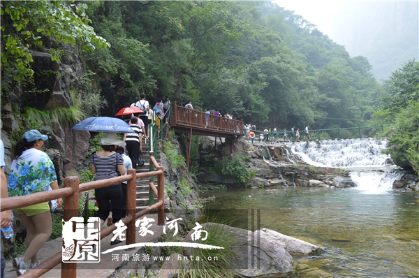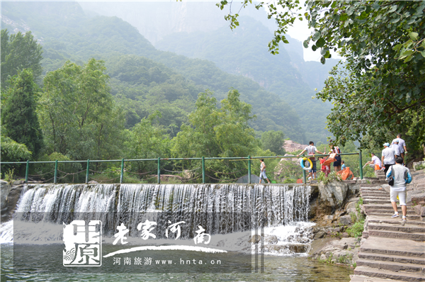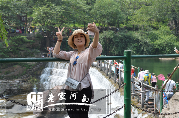 行走在八里溝“百潭百瀑水連天,天河瀑布天連水”自然景觀之中,中外游客體驗(yàn)了“白云飛渡繞太行,碧翠青山翻波浪。潭瀑流水響溝谷,如夢(mèng)如幻在身旁”的中國“北方水世界”魅力。