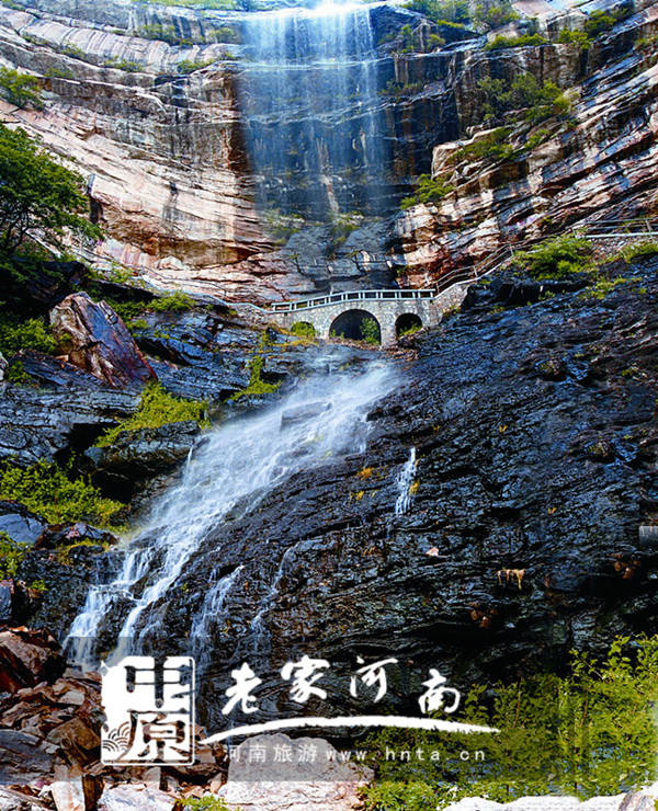 盧崖瀑布景區(qū)位于登封市區(qū)東北6公里的嵩山太室山懸練峰下,景區(qū)內(nèi)有一股泉水,終年不斷,平時泉水瀉崖下,好似千水珠簾掛長空,澎湃之聲,如虎豹怒吼,如雷聲轟鳴,太陽直射上面,其光異彩,燦爛奪目,瞬息萬變,氣象萬千。水珠積流,形成水潭,潭上獨出一個黛色圓石,明朝袁宏道在上面刻有墨浪石三個大字。水流其上,好似墨浪,人稱此景為盧崖瀑布墨浪流,亦稱珍珠倒卷簾。另外八龍?zhí)、一線天、龍?zhí)讹w瀑也是市民常去的嵩山避暑景點。
