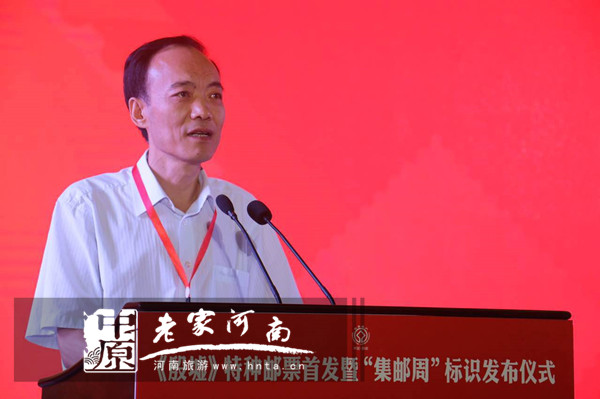 中國(guó)郵政集團(tuán)公司郵票發(fā)行部總經(jīng)理高山、安陽市政府常務(wù)副市長(zhǎng)陳志偉共同為《殷墟》特種郵票揭幕