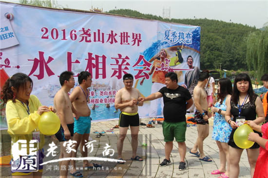 7月16日,一場(chǎng)主題為告別單身汪,讓我們來一場(chǎng)濕身約會(huì)的水上相親會(huì)在堯山水世界激情上演,20對(duì)單身男女經(jīng)過網(wǎng)上重重篩選來到現(xiàn)場(chǎng),隨機(jī)配對(duì),倆倆組成一隊(duì),經(jīng)過“3分鐘約會(huì)”“為愛奮戰(zhàn)”游戲和“戲水?dāng)⑶?rdquo;等環(huán)節(jié),上演了一場(chǎng)現(xiàn)場(chǎng)版的“非誠(chéng)勿擾”。