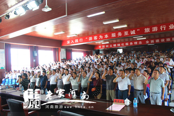 “我宣誓,秉承游客為本、服務(wù)至誠(chéng)核心價(jià)值觀,視品牌為生命,視游客為親人,誠(chéng)信經(jīng)營(yíng),誠(chéng)摯待客,時(shí)時(shí)處處為游客著想,不讓一名游客在欒川受委屈......”8月1日,河南省欒川縣上千名旅游從業(yè)人員宣誓,不斷提升服務(wù)水平,踐行“游客永遠(yuǎn)是對(duì)的”理念。