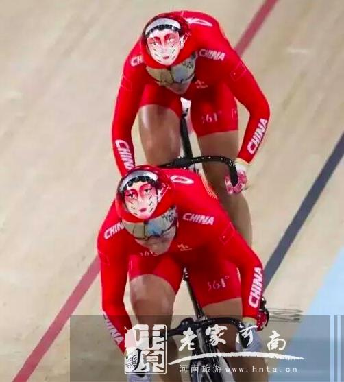 “穆桂英”和“花木蘭”刮起的紅色旋風(fēng)席卷整個(gè)場(chǎng)地自行車場(chǎng),兩人高高舉起五星紅旗,繞場(chǎng)向觀眾們致意。