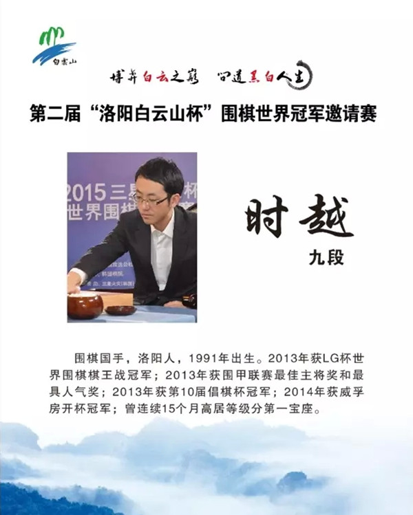 8月17日至19日,第二屆“洛陽(yáng)白云山杯”圍棋世界冠軍邀請(qǐng)賽,將在洛陽(yáng)白云山景區(qū)隆重舉行。屆時(shí),八位圍棋國(guó)手齊聚洛陽(yáng)白云山,博弈中原之巔,問(wèn)道黑白人生,棋圣聶衛(wèi)平也將現(xiàn)場(chǎng)掛盤(pán)講棋!去年首屆邀請(qǐng)賽的冠軍柯潔,能否繼續(xù)問(wèn)鼎白云山,奪取“王中王”,請(qǐng)拭目以待!
