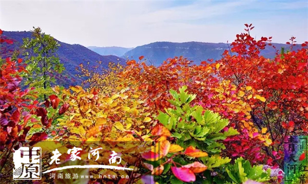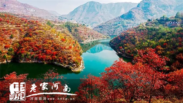 秋天的青天河是萬山紅遍,層林盡染的。等到了深秋時(shí)節(jié),雅致、豐富多彩之類的詞匯似乎已無法形容青天河的美麗了。初霜過后,氣溫走低,葉色變得更加濃艷,滿山紅葉,層林盡染、如火如荼。青天河靳家?guī)X游覽區(qū)里近十萬畝紅葉林覆蓋區(qū)內(nèi)3868座峰嶺溝崖。一片片小小的紅葉匯集在一起,形成了一片紅色的海洋,鋪天蓋地而來,蔚為壯觀,令人驚嘆!
