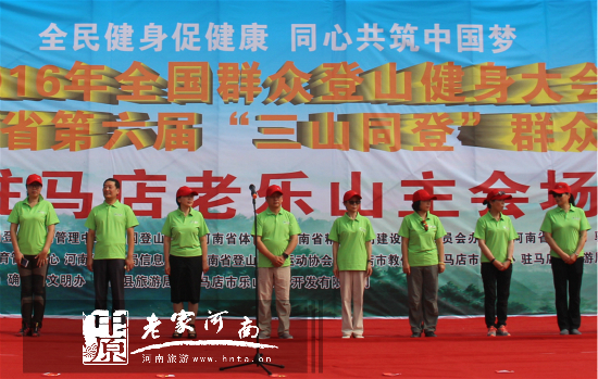 9月3日,由國(guó)家體育總局登山運(yùn)動(dòng)管理中心、中國(guó)登山協(xié)會(huì)、河南省體育局、河南省文明辦、河南省旅游局共同主辦,河南省社會(huì)體育管理中心、河南省旅游局信息中心、河南省登山戶外運(yùn)動(dòng)協(xié)會(huì),以及駐馬店市教育體育局、駐馬店市文明辦、駐馬店市旅游局、確山縣人民政府共同承辦的2016年全國(guó)群眾登山健身大會(huì)暨河南省第六屆“三山同登”群眾登山健身大會(huì)在駐馬店老樂山國(guó)家4A級(jí)旅游景區(qū)隆重開幕。