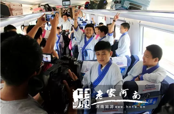 隨著鄭徐高鐵的正式開通運營,早上9點10分,身著漢服的小學(xué)生出現(xiàn)在徐州東站的候車站臺,他們準備乘坐鄭徐高鐵G1803次班車,前往永城芒碭山體驗漢禮儀,他們的到來也吸引了車廂內(nèi)游客的眼球,看著他們仿佛感覺乘著高鐵穿越了時空。經(jīng)過27分鐘列車準時、安全的到達了永城北站。