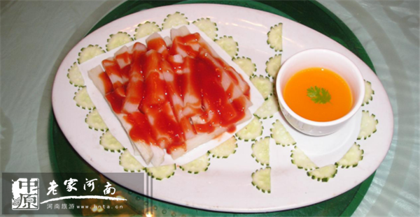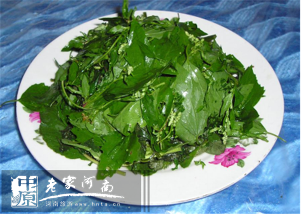 此菜用料取自八里溝一種叫“仙人樹”的樹葉,清熱解毒,消暑生津,健康綠色。用蒜汁、醋、香油涼拌而成,據(jù)說是當(dāng)?shù)剞r(nóng)家度過夏季的主要用菜。