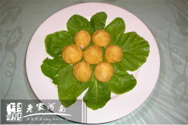 此飯食是八里溝山民過去主要農(nóng)家飯。用料采用當(dāng)?shù)赜衩酌妫檬ホ呏,放上白糖,蒸制而成。吃上這種“黃金窩窩頭”,可體驗(yàn)八里溝山民過去的生活。