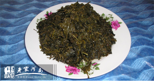 這種菜肴用料取自八里溝當(dāng)?shù)匾环N野芝麻葉,用熱水抄后,加鹽、蒜汁、香油等涼拌而成,具有爽口、消毒、生津的功效,是八里溝當(dāng)?shù)厣矫襁^去度過冬季和春初的主打菜。