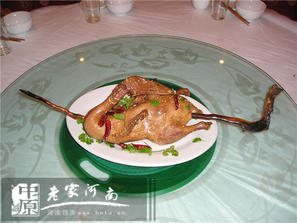 此種菜肴用料為當(dāng)?shù)剞r(nóng)家鴨。用當(dāng)?shù)靥夷究局贫桑嗥、里嫩,香酥可口,可與北京“全聚德烤鴨”比美,而且用料考究、制作獨特,是八里溝當(dāng)?shù)剡^去富裕人家待客的主要菜肴。