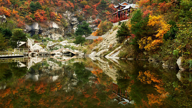 太行山的秋季是紅葉的主場(chǎng),太行大峽谷的紅葉最大的特點(diǎn)是它與大山、流水的完美結(jié)合。秋色層林浸染的巖壁、湛藍(lán)粼粼的十里平湖,山環(huán)樹(shù)繞碧水流溪,彷若走進(jìn)一幅世外桃源畫(huà)卷,這個(gè)季節(jié),是她一年中最美的時(shí)候。