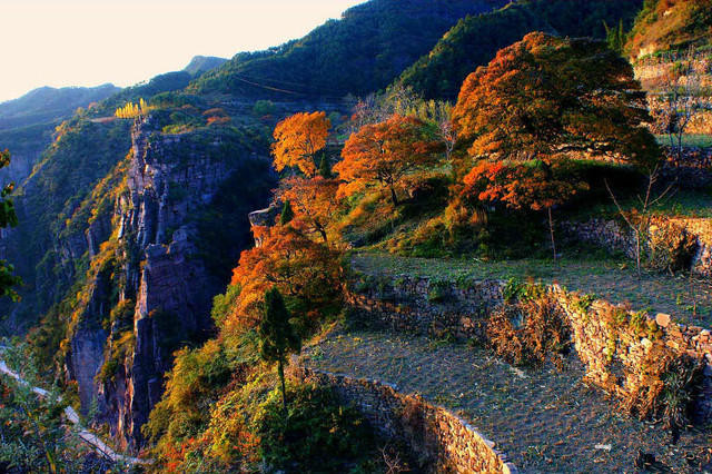 在萬(wàn)仙山,紅色可不僅是郭亮村和丹分溝那一簇簇紅葉的專(zhuān)用詞。萬(wàn)仙山是太行紅巖絕壁的代表景觀,因此紅色的山崖自然是司空見(jiàn)慣。還有更鮮艷的紅色來(lái)自數(shù)萬(wàn)畝野生山楂掛,紅葉映紅崖,看太行最美紅葉,賞絕壁紅巖景觀,品嘗誘人山楂,想想就流口水!
