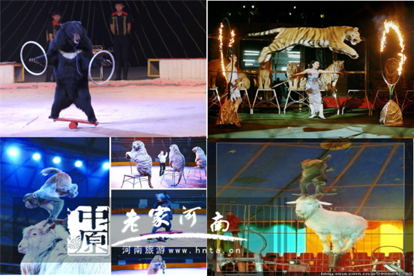 節(jié)目單:老虎連連鉆火圈、老虎高空翻、東北虎算算術(shù)、黑熊高空翻單杠、老虎走單橋、山羊走鋼絲、雙虎對陣單邊橋、小鳥認識人民幣